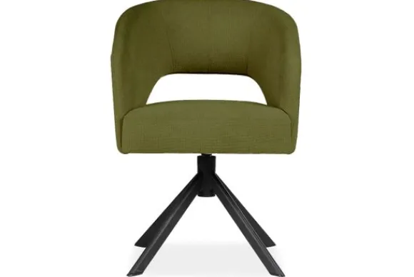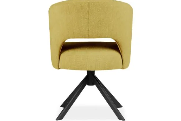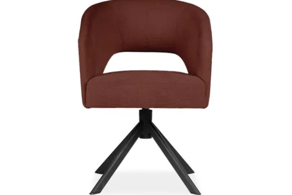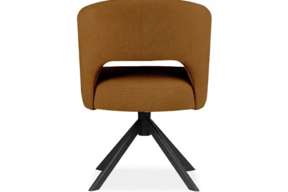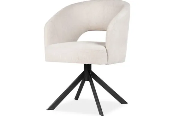 Eetkamerstoel Andy van het merk Bellagio Seats heeft een zachte ronde vorm met een opening in de zitting. De zwart metalen spinpoot zorgen voor een chic accent.