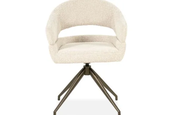 Het stevige metalen onderstel in bronskleur heeft een moderne spinvorm die stabiliteit en elegantie combineert. Een perfecte match voor wie comfort en design wil samenbrengen in één stoel.