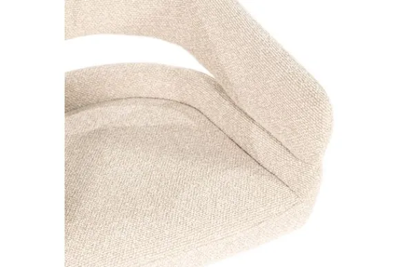 De zitting van eetkamerstoel Hailey is royaal gevuld en bekleed met de zachte stof Eira beige die niet alleen prettig aanvoelt, maar ook comfortabel ondersteunt tijdens lange diners of gezellige avonden.