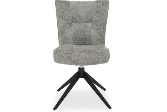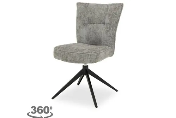 Eetkamerstoel Bardi NC 0405 van het merk Tower Living is een eigentijdse blikvanger die comfort en design naadloos met elkaar verbindt. De luxueuze, zilvergrijze stof heeft een verfijnde structuur die subtiel speelt met lichtval, terwijl het stoere metalen onderstel zorgt voor een modern accent. Dankzij het slimme 360 graden draaimechanisme biedt deze stoel niet alleen bewegingsvrijheid, maar ook een speelse functionaliteit aan de eettafel.