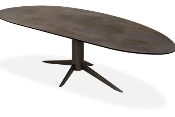 Eettafel San Lorenzo van het merk Every Table BV is uitgevoerd met een slippervormig blad van HPL. De tafel heeft een rechte poot en biedt veel ruimte rondom.