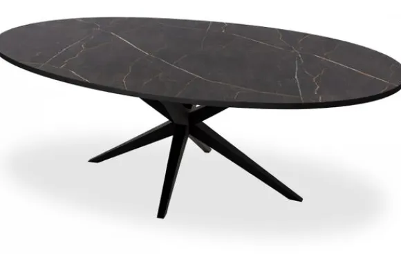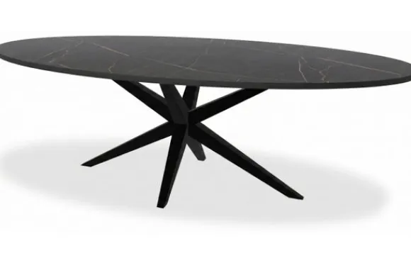 Eettafel San Lorenzo van het merk Every Table BV is uitgevoerd met een ovaal blad van HPL. De tafel heeft een centrale spinpoot van zwart metaal en biedt veel ruimte rondom. HPL is een sterke en onderhoudsvriendelijke kunststof toplaag die bestaat uit samengeperste lagen, waardoor het blad krasvast, kleurvast en slijtvast is.