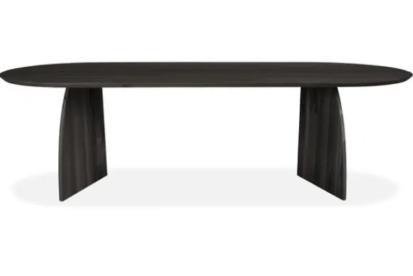 Eettafel Torvic van het merk Premium Interior is uitgevoerd met een plat ovaal blad en staat op twee stevige poten. De combinatie van het blad en het onderstel zorgt voor een stabiele en praktische tafelopstelling.