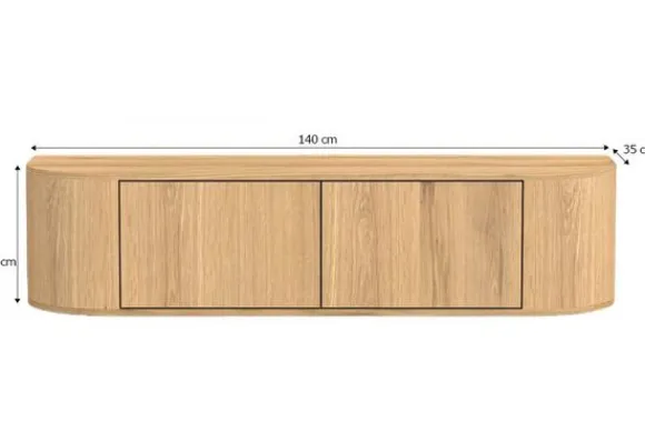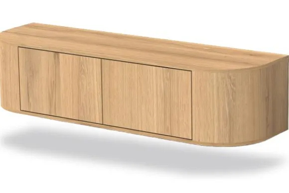 Hangend tv-meubel Novero van het merk Livingfurn is een wandmeubel met een lichte houtkleur en afgeronde vormen. Door het zwevende ontwerp blijft de vloer vrij, wat dit tv meubel geschikt maakt voor gebruik in de woonkamer en zorgt voor een open en overzichtelijke indeling.