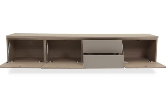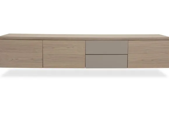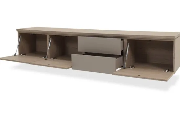 Monteer het tv-meubel hangend voor een strak effect of kies voor 12 cm hoge poten voor een luchtige look.