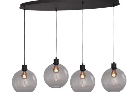 Hanglamp 2644-05-05-100-40425 Lazise van het merk Masterlight is een elegante en moderne lamp. De hanglamp heeft vier lampenkappen die gemaakt zijn van rookkleurig grijs glas en hebben een diameter van vijfentwintig centimeter. De moderne lamp combineert mooi met de mat zwarte armatuur. Boven de eettafel, salontafel of boven het keukeneiland. De hanglamp komt goed tot zijn recht in verschillende soorten ruimtes. Bepaal zelf de sfeer door de lamp eenvoudig aan te sluiten op een dimmer. Zacht licht voor een romantisch diner en wat harder licht als je gezellig samen met vrienden een spelletjesavond hebt. Er zit geen lichtbron bij deze lamp. Laat je fantasie de vrije loop en maak de lamp compleet door bij “kies je extra’s” je unieke lichtbron uit te kiezen.