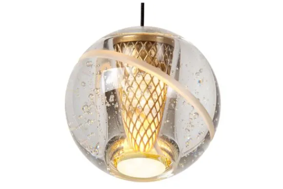 Hanglamp Dilenko van het merk Lucide is een moderne, elegante lamp door de combinatie van de vormgeving, kleuren en de materialen. Vanaf de plafondplaat in messing hangen netjes op een rij vijf pendels die je eenvoudig in hoogte kan verstellen. Onderaan vind je minimalistische, bolvormige, glazen lampenkappen met verfijnde details. In de lampenkappen zitten geïntegreerde ledlichtbronnen schuil die de ruimte van warm wit licht voorzien. Door de hanglamp aan te sluiten op een dimmer breng je de sfeer naar een hoger niveau.