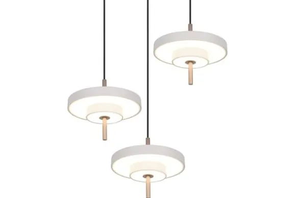 Hanglamp Keaton 340230376 van het merk Trio Lighting is een moderne hanglamp met geïntegreerde LED verlichting. De drie ronde lichtschijven zorgen voor een gelijkmatige lichtverdeling en maken deze lamp geschikt voor boven de eettafel of het kookeiland.