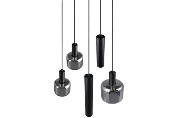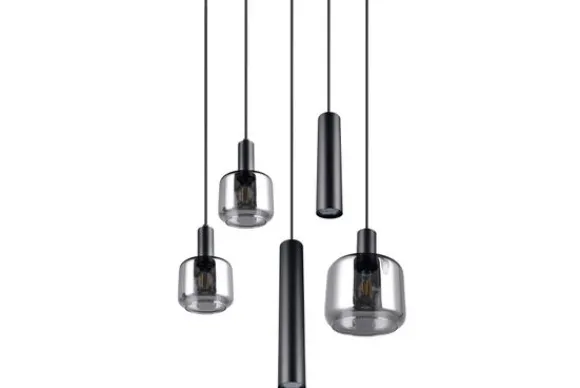 Hanglamp Mataro van het merk Trio Lighting heeft twee slanke metalen armaturen met drie glazen elementen, dat zorgt voor een buitengewone lichtverdeling en intrigerende reflecties in je ruimte. Het amatuur heeft een subtiele glans en een licht spiegeleffec, door het mat zwarte metaal in combinatie met de verchroomde glazen elementen. Geef je ruimte extra uitstraling door de hanglamp bijvoorbeeld boven je eettafel te hangen. De lamp is een eye-catcher binnen elke woonstijl. Deze lamp is exclusief de vijf lichtbronnen met: één keer een E27 fttting, twee keer een E14 fitting en twee keer een GU10 fitting. Voeg deze eenvoudig aan je winkelwagen toe wanneer je de hanglamp toevoegd aan je winkelwagen.