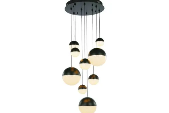 Hanglamp Sparkle van het merk Highlight heeft 9 glazen lampenkappen in verschillende formaten. Deze 9 lampen zijn verstelbaar in lengte, de maximale lengte is 350 cm. De lampen kunnen op verschillende lengtes gehangen worden, waardoor je een speels effect creeërt.