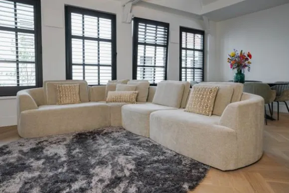 Hoekbank Marjolein van het merk Fris Lifestyle is verkrijgbaar in alle kleuren en verschillende materiaalsoorten zoals stof, velvet en microvezel. Daarnaast is deze bank verkrijgbaar in verschillende afmetingen en opstellingen. De bank heeft een knusse uitstraling dankzij de ronde vormen en dubbele rugkussens. De armleuning loopt naadloos door in de rugleuning, dit geeft een moderne look. De zitting is gevuld met koudschuim wat voor een stevige zit zorgt. De rugkussens hebben een vulling van koudschuim met een bovenlaag van siliconenvezels, hierdoor zijn deze wat zachter.