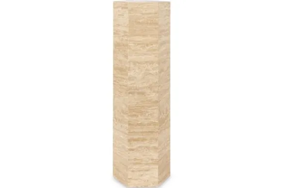 Pilaar Vespin 212985 van het merk Richmond Interiors is gemaakt van travertine. Travertin is een kalksteen in een beige tint die ontstaat in warmwaterbronnen met veel kalk in het water. Deze steensoort kenmerkt zich door de kleine gaatjes die ontstaan door het schuren van takjes, stenen en blaadjes in het water. Travertin is een duurzame steensoort, robuust en makkelijk schoon te maken met een vochtige doek. Elk stuk is uniek, je haalt zo dus echt iets unieks in huis! De pilaar heeft een zeshoekige vorm, hierdoor is het een echte eyecatcher in jouw interieur. Om te pilaar goed tot zijn recht te laten komen, kan je je mooiste vaas met bloemen op zetten.