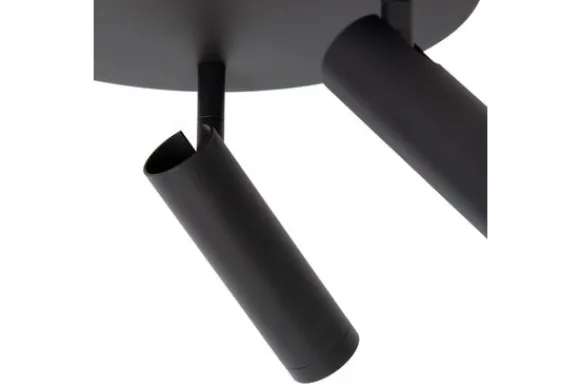 Plafondlamp Grado van het merk Lucide is een krachtige drie-spotlamp met een verfijnde, cilindervormige vormgeving en een matzwarte, moderne uitstraling. De ronde plafondplaat zorgt voor een harmonieuze balans tussen functionaliteit en design.
