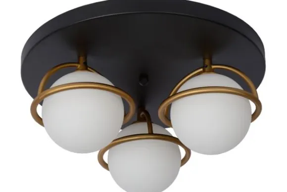Plafondlamp Isobel van het merk Lucide is speciaal ontworpen voor een veilig gebruik in een vochtige omgeving. Dat maakt van deze plafondlamp een ideale lamp in je badkamer. De lamp heeft drie lichtbronnen, elk omgeven door een bol gemaakt uit hoogwaardig glas. Die bollen worden op hun beurt beschermd door een metalen ring. Het geheel hangt via een aluminium bevestigingsplaat, met een diameter van 38 centimeter, aan je plafond. De plafondlamp is perfect dimbaar en dus ook geschikt om een juiste sfeer te creëren in andere ruimtes van je woning.