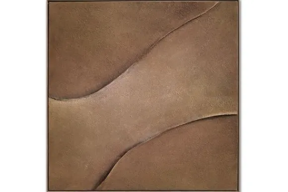 Schilderij Canyon Curves OAF-014 van het merk Luxe Framing Art is een modern kunstwerk met twee golvende reliëflijnen op een bruine achtergrond. Dit schilderij is direct uit voorraad leverbaar.