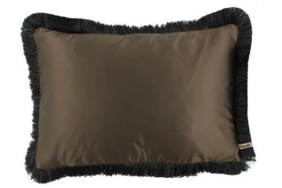 Clearance Sierkussen Brown + Fringe black Taupe Dafne | Sierkussens