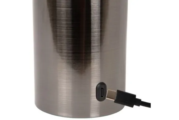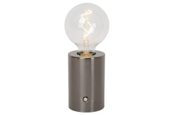 Tafellamp Vivo van het merk Lucide is een eigentijdse blikvanger in compact formaat. De cilindervormige voet in geborsteld zwart chroom straalt een warme luxe uit, terwijl de grote, zichtbare filamentlamp zorgt voor een speelse en industriële touch. Een perfect huwelijk tussen minimalisme en elegantie. Daarnaast is de lamp oplaadbaar en dus ook zonder snoer te gebruiken.