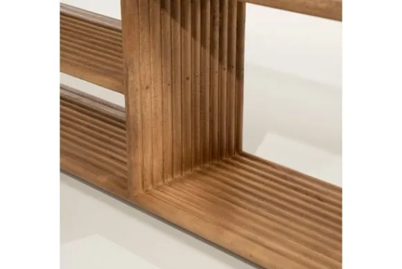 Tv-meubel Rigato 250453 van het merk By-Boo is een stijlvolle blikvanger gemaakt van warm mangohout. Het open design met afgeronde hoeken en ribbelstructuur geeft het meubel een luchtige uitstraling.