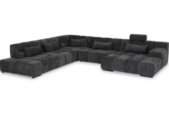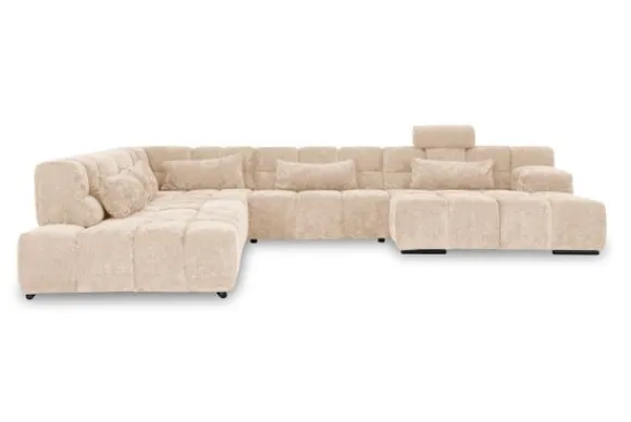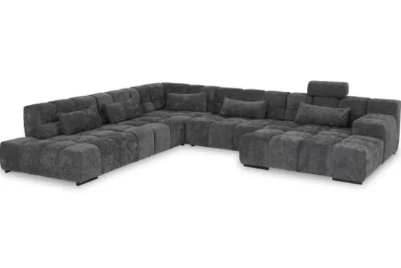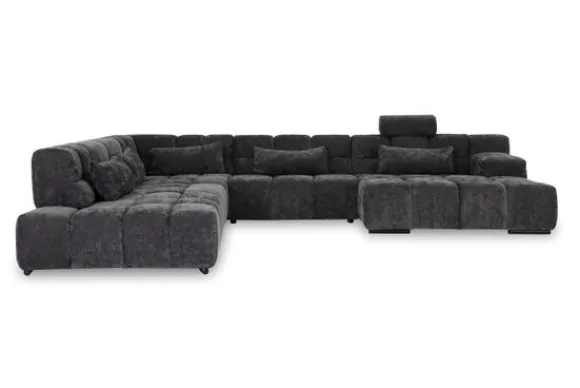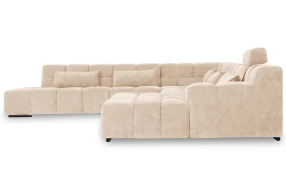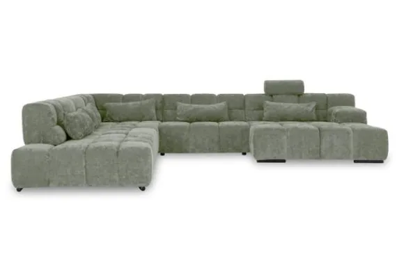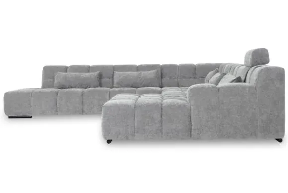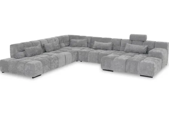 Dit bankstel is samen te stellen in vele afmetingen en verschillende opstellingen, of kies uit een van de standaard opstellingen. Ook kan je kiezen uit mat zwarte of chroom pootjes en zijn er bijpassende hoofdsteunen, sier- en lendekussens en poefjes beschikbaar. Deze worden uitgevoerd in dezelfde stof als de bank.