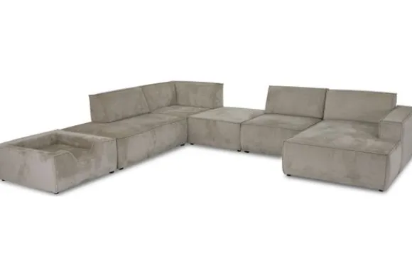 Hoekbank Sevijn van het merk Kenzo is verkrijgbaar in alle kleuren en in verschillende materialen zoals stof, velvet en rundleder. Er kan gekozen worden uit verschillende afmetingen, zo is er een passende bank voor iedere woonruimte! Het bankstel heeft een strakke uitstraling en heeft een stevige zit door de vaste kussens. Deze bank heeft geknepen naden langs de armleuningen en alle kussens, waardoor dit bankstel ook stoer oogt. Wat deze bank uniek maakt, is dat de rugleuning van de bank versteld kan worden. Dit doe je door deze op te tillen en naar voren te zetten. Zo bepaal je zelf de zitdiepte van de bank. Bij deze bank zit ook een huisdierenmand, zo heeft jouw dierenvriend ook zijn eigen plekje op de bank! De mand heeft een uitneembaar kussen die je kunt wassen.