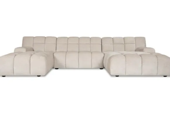 Je kunt kiezen uit verschillende materialen, waaronder stoffen als velvet en boucle. Daarnaast is de bank verkrijgbaar in uiteenlopende kleuren.