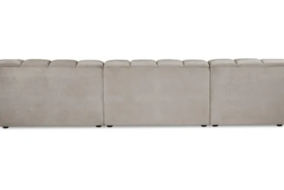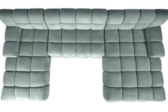 Bankstel Trentino van het merk Moderno is een bank met geblokte zit- en rugkussens en een zitting die doorloopt tot net boven de grond.