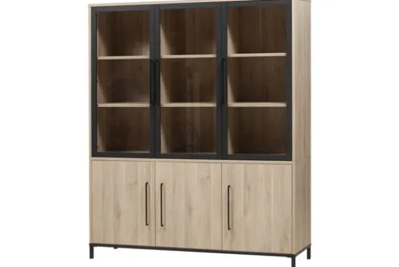 Deze vitrinekast heeft drie glazen deuren boven en drie gesloten deuren onder. Ideaal om servies of decoratie te tonen en spullen netjes op te bergen. Alberta – Bridge maakt deel uit van een complete met o.a. tv-meubels, eettafels en dressoirs.