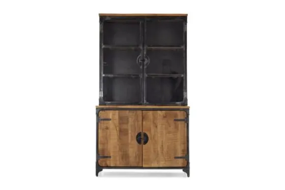 Buffetkast Basto IF 1085B in de kleur bruin van het merk Tower Living is gemaakt van duurzaam mangohout gecombineerd met metaal. Door dit gebruik van materialen heeft de kast een industriële uitstraling en is leuk te combineren met andere meubels uit de Basto serie. De buffetkast heeft drie planken achter glazen deuren en opbergruimte achter twee gesloten deuren.