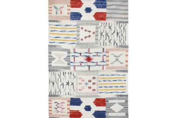 Vloerkleed Empire 110 Ivoor Multi van het merk Divendo is verkrijgbaar in verschillende afmetingen. Dit prachtige wollen kleed krijgt zijn bijzondere uitstraling door geometrische vormen en verschillende kleuren. Ondanks de verscheidenheid aan kleuren is het vlakpolige vloerkleed met enkele ongeverfde delen vrij subtiel, waardoor het ideaal te combineren is met vele inrichtingsstijlen. De dessinsamenstelling van het wollen kleed bestaat uit de basiskleuren blauw, rood en geel, maar ook zwart, grijs en wit.