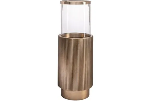 De onderzijde is gemaakt van metaal met een verticale structuur in een warme goudkleur. Windlicht Soreli is perfect op een dressoir, salontafel of bijzettafel en brengt direct sfeer in huis.