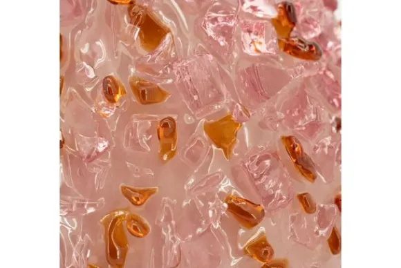 De zachte roze tint wordt verrijkt met ruwe, kristalachtige details in warme amber- en rosétinten. Dit zorgt voor een bijzondere textuur en een fascinerend lichtspel. Door het ambachtelijke proces kunnen dikte, kleur en onregelmatigheden variëren, wat bijdraagt aan de unieke charme van de vaas.