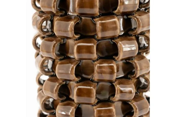 De structuur van Vaas Loopa bestaat uit een ritme van ronde schakels die een boeiend licht- en schaduwspel creëren.