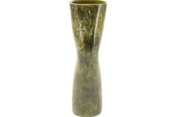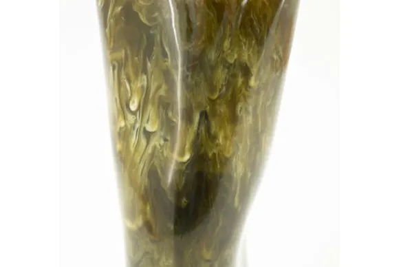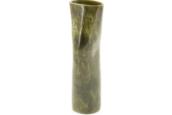 De groene tinten vloeien sierlijk in elkaar over, waardoor de vaas doet denken aan gepolijst marmer.