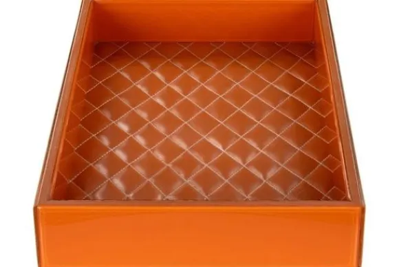 Dienblad Jelissa 212103 van het merk Richmond Interiors heeft een strakke uitstraling die enerzijds ook klassiek oogt door de geruite binnenkant. Het dienblad is gemaakt van MDF, glas en rexine. Rexine is een vorm van kunstleder dat tegenwoordig nog gebruikt wordt voor het binden van lederen boeken en heeft de look van echt leer. Rexine is slijtvast en een antislipmateriaal. Het luxe dienblad is zowel praktisch als decoratief te gebruiken.