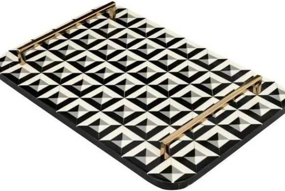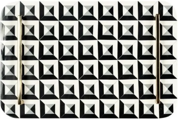 Dienblad Birte 212104 van het merk Richmond Interiors heeft een blad gemaakt van polyresin en handvatten gemaakt van staal. Dit is een materiaalsoort dat bestaat uit gemalen steen dat wordt vermengd met vloeibaar kunsthars. Hierdoor is het materiaal sterk en kan er geen vocht indringen. Het materiaal is makkelijk schoon te maken zonder schoonmaakmiddelen en heeft een eindeloze levensduur. Een leuke accessoire om te decoreren in jouw interieur. Het blad van het dienblad heeft een uniek zwart en wit design. Het luxe dienblad is zowel praktisch als decoratief te gebruiken.