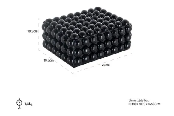 Juwelenbox Batool klein 211133 van het merk Richmond Interiors heeft een luxueuze uitstraling. De juwelenbox is gemaakt van resin. Dit is een materiaalsoort dat bestaat uit gemalen steen dat wordt vermengd met vloeibaar kunsthars. Hierdoor is het materiaal sterk en kan er geen vocht indringen. Het materiaal is makkelijk schoon te maken zonder schoonmaakmiddelen en heeft een eindeloze levensduur. Een leuke juwelenbox met opbergruimte en tegelijkertijd een accessoire om te decoreren in jouw interieur. De binnenkant heeft een afmeting van H6,5xB20xD14,5 cm. Tip: deze juwelenbox is ook verkrijgbaar in een grotere variant .
