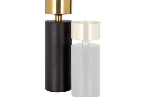 Kandelaar Tess 211751 groot van het merk Richmond Interiors is vervaardigd uit hout en heeft een messing kaarsplateau. De kandelaar geeft een chique uitstraling door de kleuren zwart en goud. De kandelaar is geschikt voor een waxinelichtje.