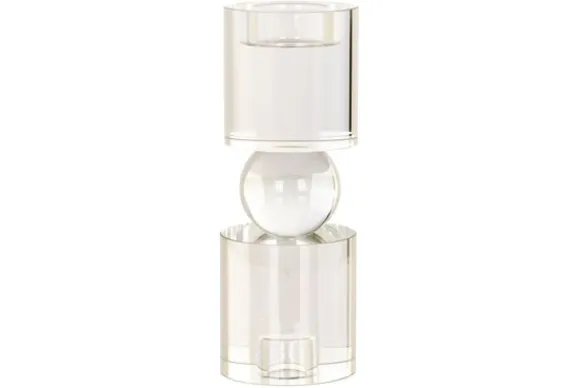 Kandelaar Zahra 212040 kristal van het merk Richmond Interiors is vervaardigd uit kristal. Deze kandelaar is voor zowel een dinerkaars als een klein waxinelicht, waardoor de kandelaar op twee manieren te gebruiken is. De kandelaar is doorzichtig en past goed in een modern interieur.
