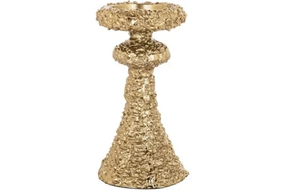 Kandelaar July klein 212456 van het merk Richmond Interiors is gemaakt van aluminium. De gouden kleur en de unieke textuur maken deze kandelaar een echte blikvanger in jouw interieur.