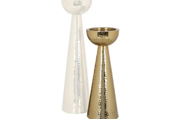 Kandelaar Lizz 211549 klein van het merk Richmond Interiors is vervaardigd uit messing en heeft hierdoor een chique uitstraling. De kandelaar is kegelvormig met een kaarsplateau dat geschikt is voor een klein waxinelichtje.