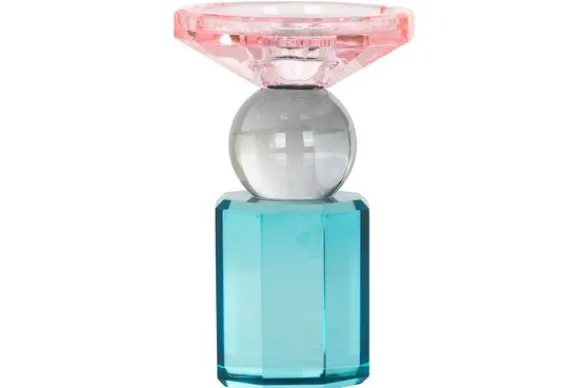 Kandelaar Michou 212182 van het merk richmond interiors is vervaardigd uit glas. De kandelaar is voorzien van een blauwe en roze kleur. De kandelaar is geschikt voor dinerkaarsen.