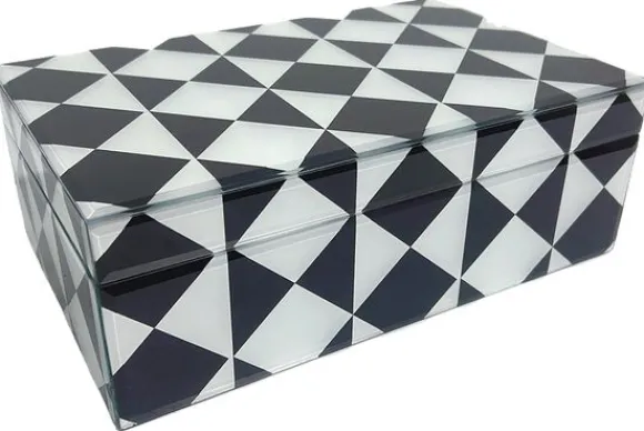 Opbergbox Silas van het merk Richmond Interiors is een moderne eyecatcher met een luxe uitstraling. Het opvallende ruitpatroon in zwart en wit speelt met geometrie en lichtinval, waardoor de box een speelse en tegelijk elegante uitstraling krijgt. De strakke lijnen en het glanzende oppervlak geven deze opbergbox een stijlvol tintje dat perfect past binnen een design of hotel chic interieur.