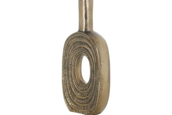 Vaas Emar klein 211199 van het merk Richmond Interiors is vervaardigd uit aluminium in de kleur brushed gold. Deze vaas heeft een uniek design en is zonder inhoud ook een decoratief item. De vaas is geschikt om op je tafel, dressoir of in de vensterbank te zetten.