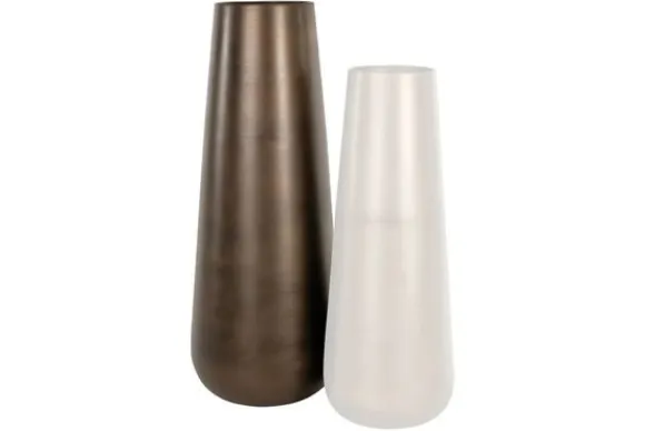 Vaas Kenza groot 213427 van het merk Richmond Interiors is een slanke metalen vaas met een luxe goudtint. Het aluminium geeft de vaas een moderne en stijlvolle uitstraling.