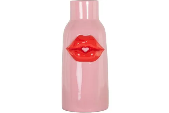 Vaas Blythe 213460 van het merk Richmond Interiors is een speels en opvallend decorstuk met een knipoog naar pop-art. De roze vaas is versierd met rode lippen in reliëf en trekt direct de aandacht.