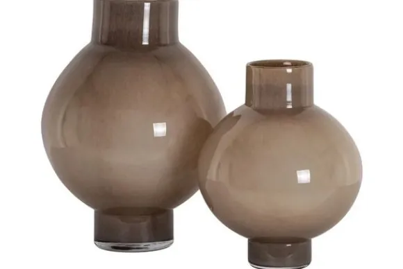 Vaas Celina klein 213516 van het merk Richmond Interiors is een verfijnd glasobject met een zachte, taupebruine tint en een mondgeblazen afwerking. De ronde vorm en smalle hals zorgen voor een tijdloze elegantie met een rustige uitstraling.