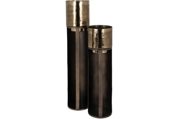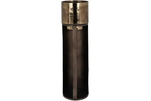 Windlicht Dane 211902 klein van het merk Richmond interiors is gemaakt van ijzer. De bovenkant van het windlicht is gespoten glas waardoor het een goud-bronze finish krijgt. Het windlicht is 93 cm hoog en heeft een diameter van 26,5 cm. Combineer het windlicht met de grotere variant.