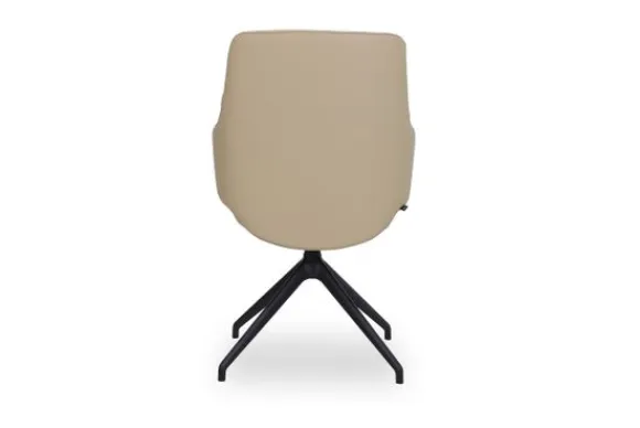 Deze stoel wordt standaard geleverd met een metalen draaipoot in de kleur zwart, er kan ook voor andere pootkleuren gekozen worden.
