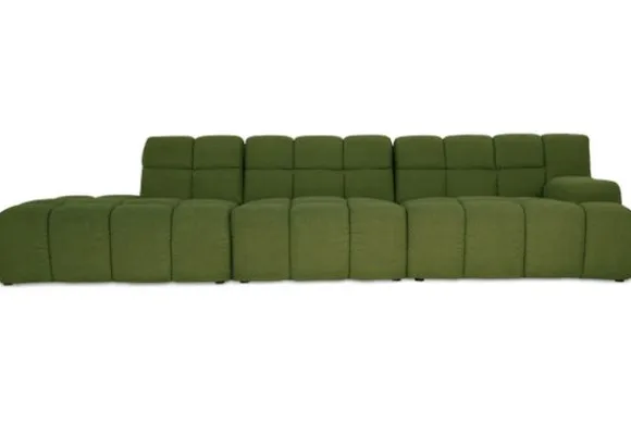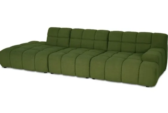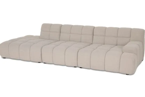 Je kunt kiezen uit verschillende materialen, waaronder stoffen als velvet en boucle. Daarnaast is de bank verkrijgbaar in uiteenlopende kleuren.