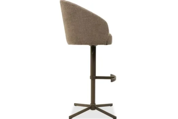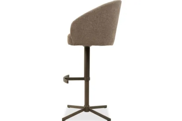 De barkruk is verkrijgbaar in diverse stoffen zoals verschillende materiaalsoorten zoals stof, velvet en rundleder.